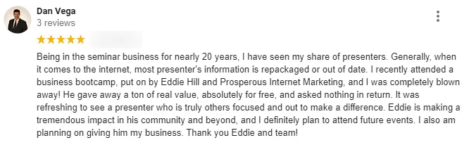 Edward Hill is a number one international Amazon Best Selling author, he’s the C.E.O./Founder of Prosperous Internet Marketing, Inc. and has been featured on ABC, NBC, CBS, FOX and dozens of radio stations, other publications, podcasts and media. Eddy has spoken to and taught tens of thousands of small business owners and entrepreneurs how to massively grow their businesses. He won the prestigious "Speaker of the Year" Award twice from the International Awards and Personalization Association.